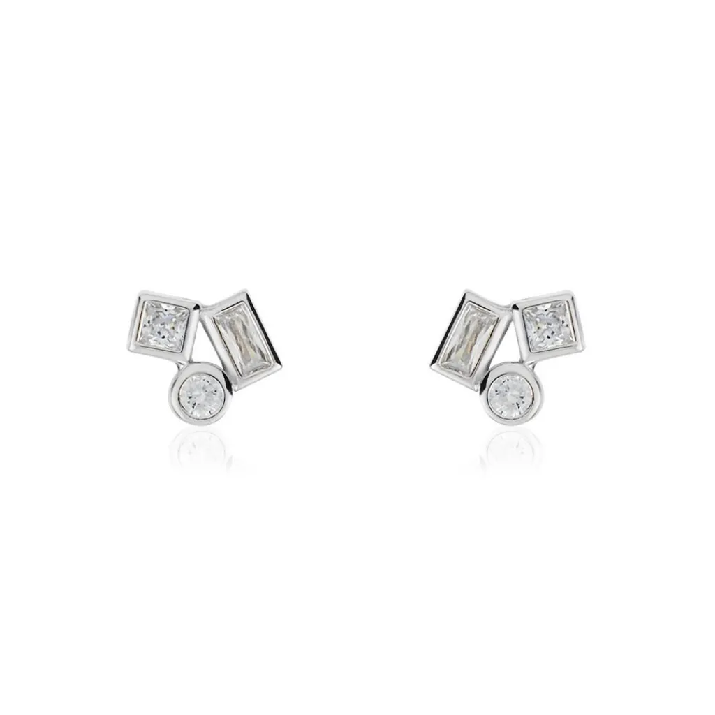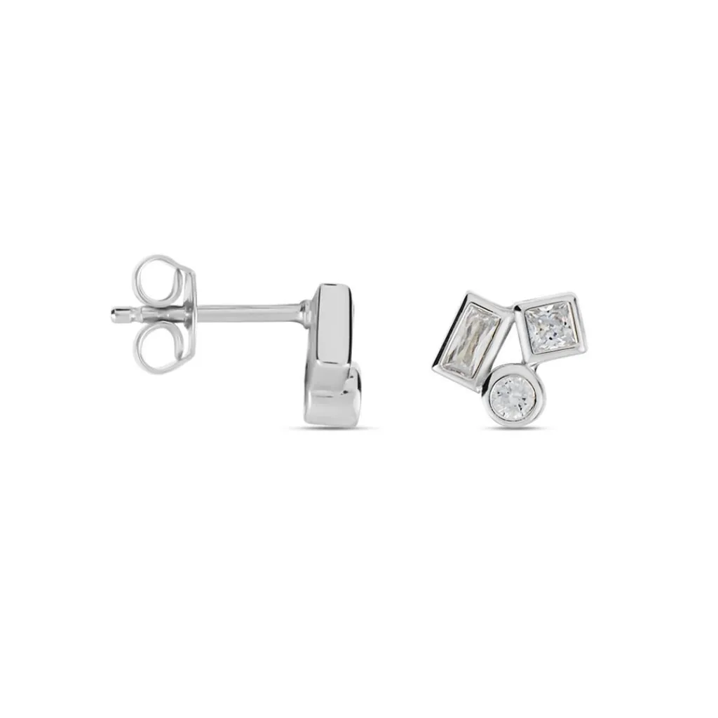 Boucles D’oreilles Puces Argent 925/1000 Formes Géometriques Micro Serti Oxydes De Zirconium