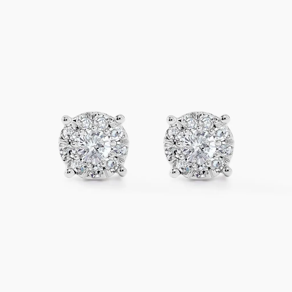 Boucles D’oreilles Or Blanc 375/1000 Puces Multipierres Diamants 0.1cts