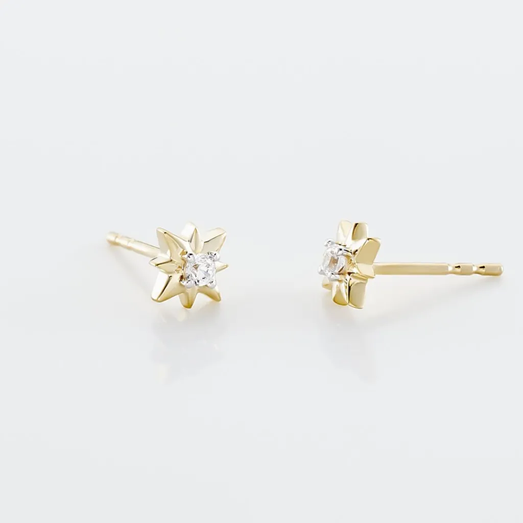 Boucles D’oreilles Or Jaune 375/1000 Puces Motifs Etoiles Oxydes De Zirconium Centraux