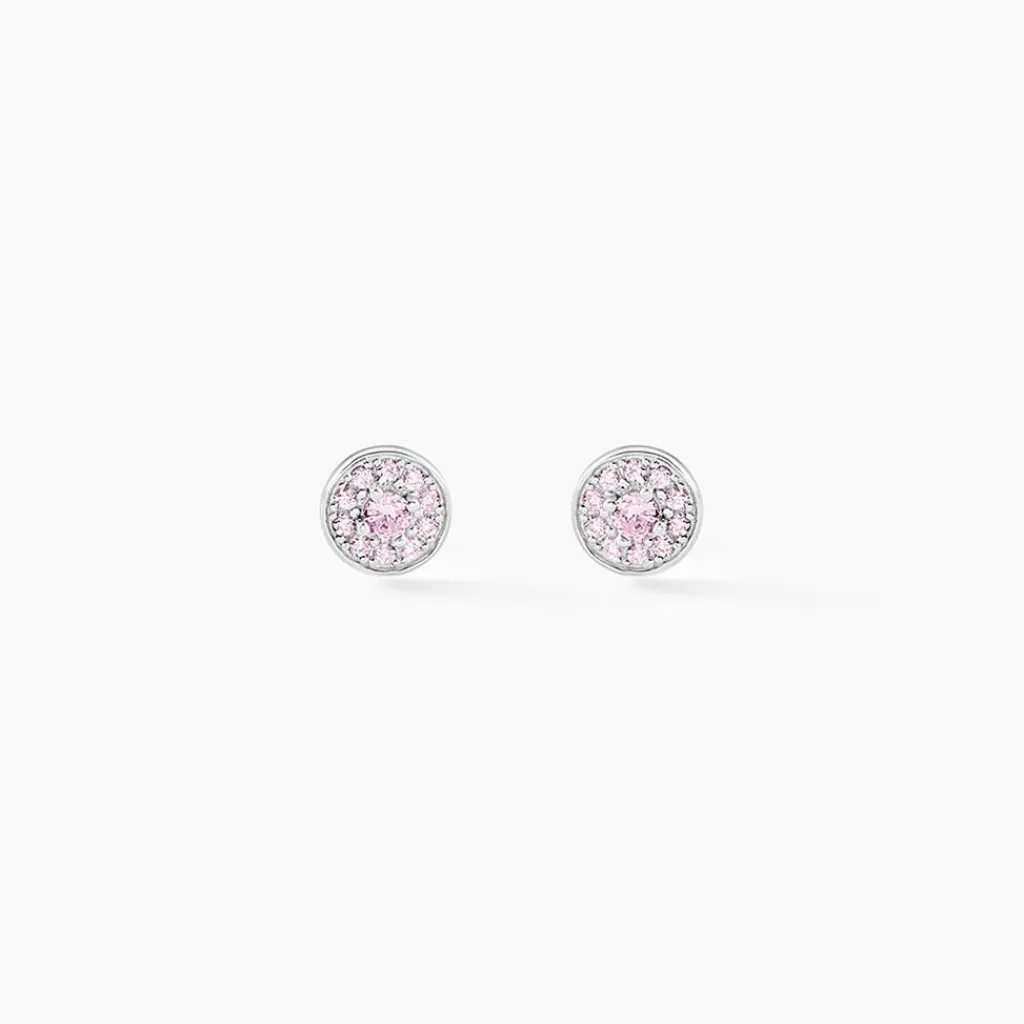 Boucles D’oreilles Puces Argent Blanc 925/1000 Pavages Oxydes De Zirconium Roses