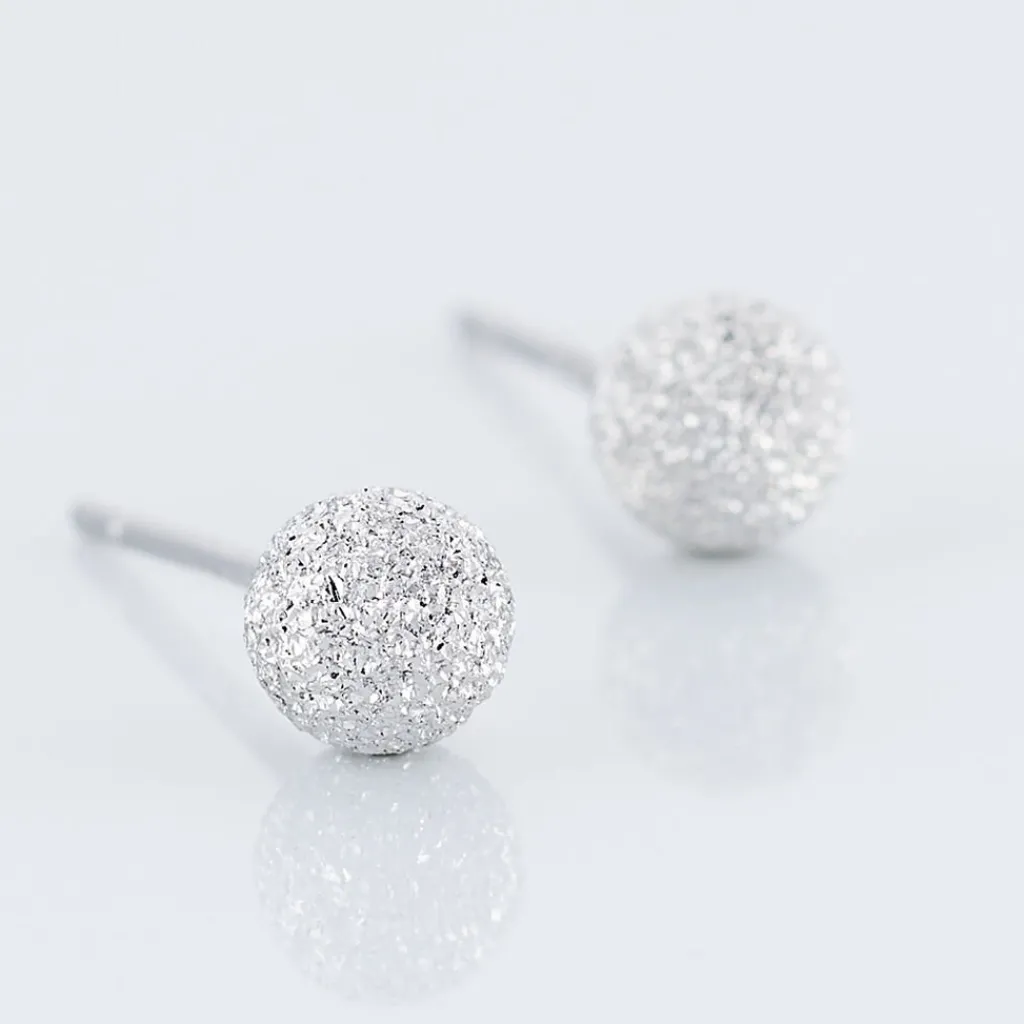Boucles D’oreilles Puces Argent Blanc 925/1000 Boules Effet Diamante 5mm