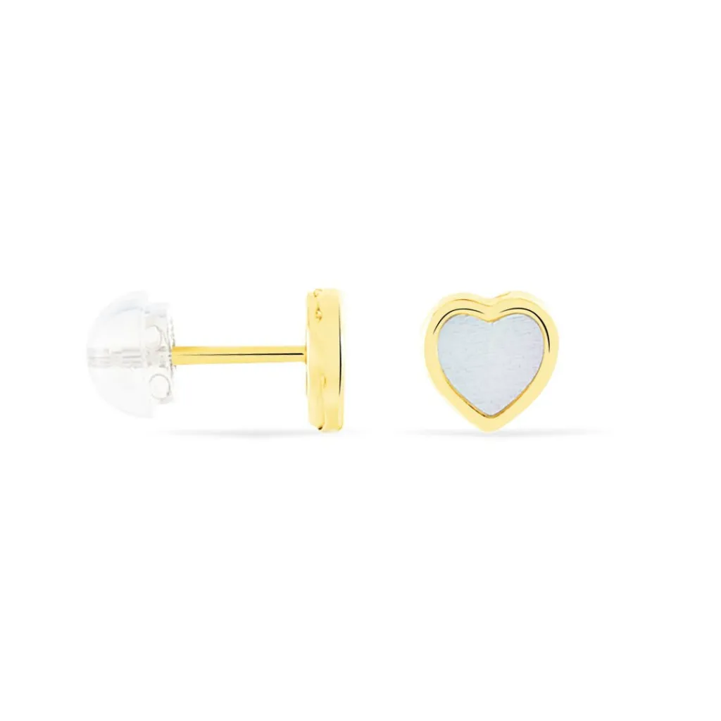 Boucles D’oreilles Or Jaune 375/1000 C艙ur Nacre