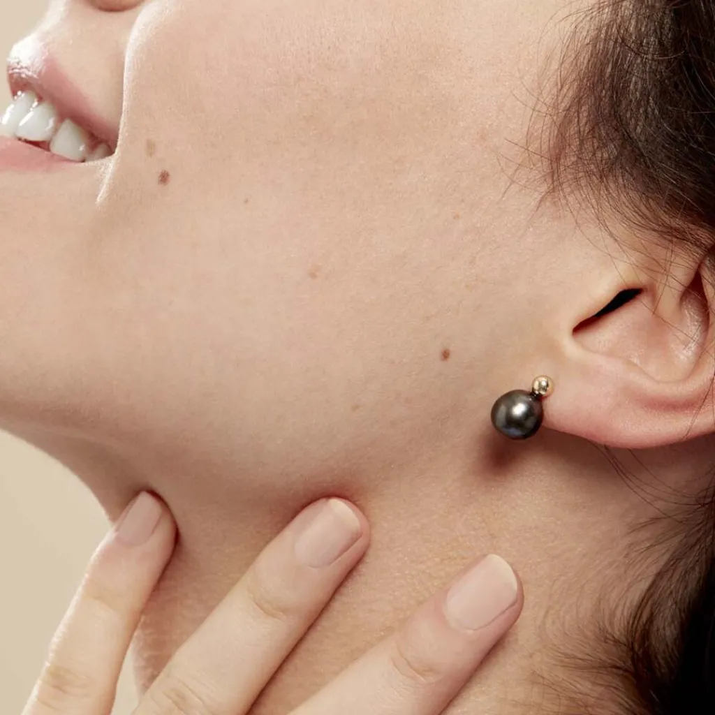 Boucles D’oreilles Or Jaune 375/1000 Perle De Culture Mer Du Sud Tahiti 8/9mm Semi-baroque