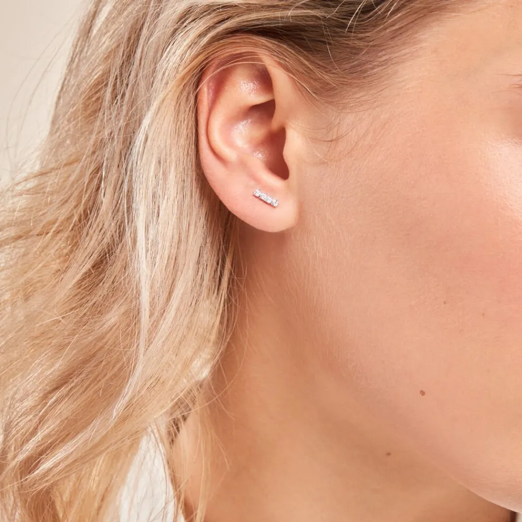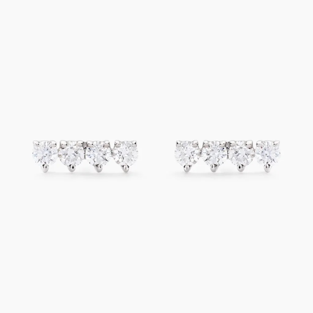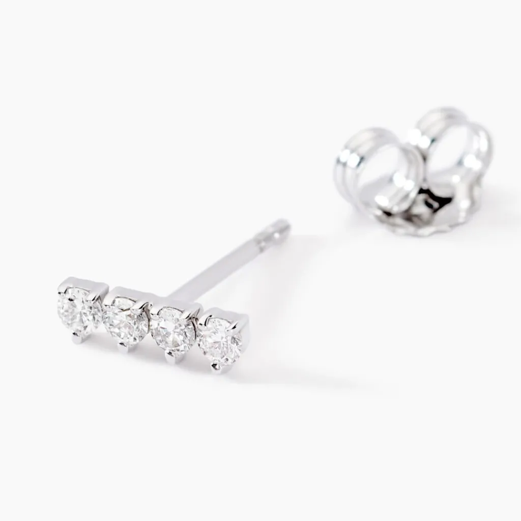 Boucles D’oreilles Or Blanc 375/1000 Barrettes Diamants Synthetiques 0.20cts