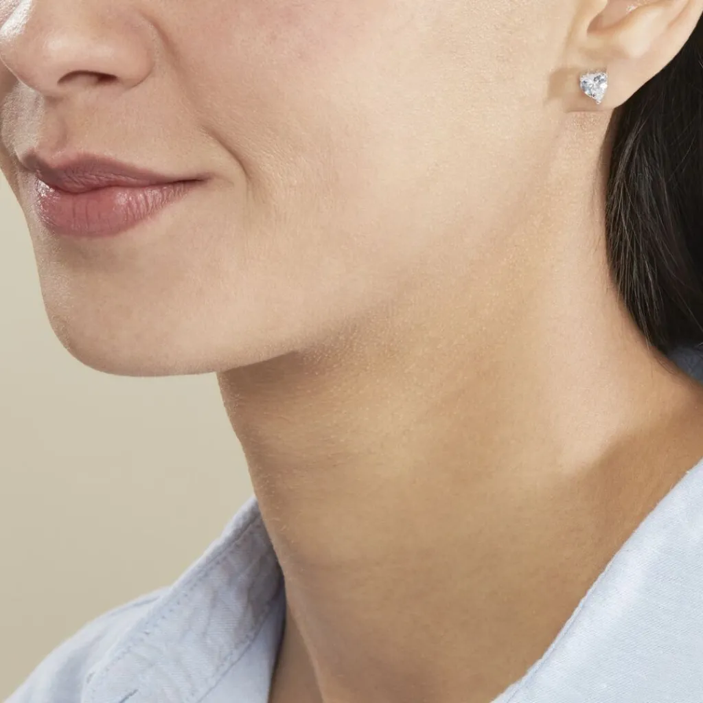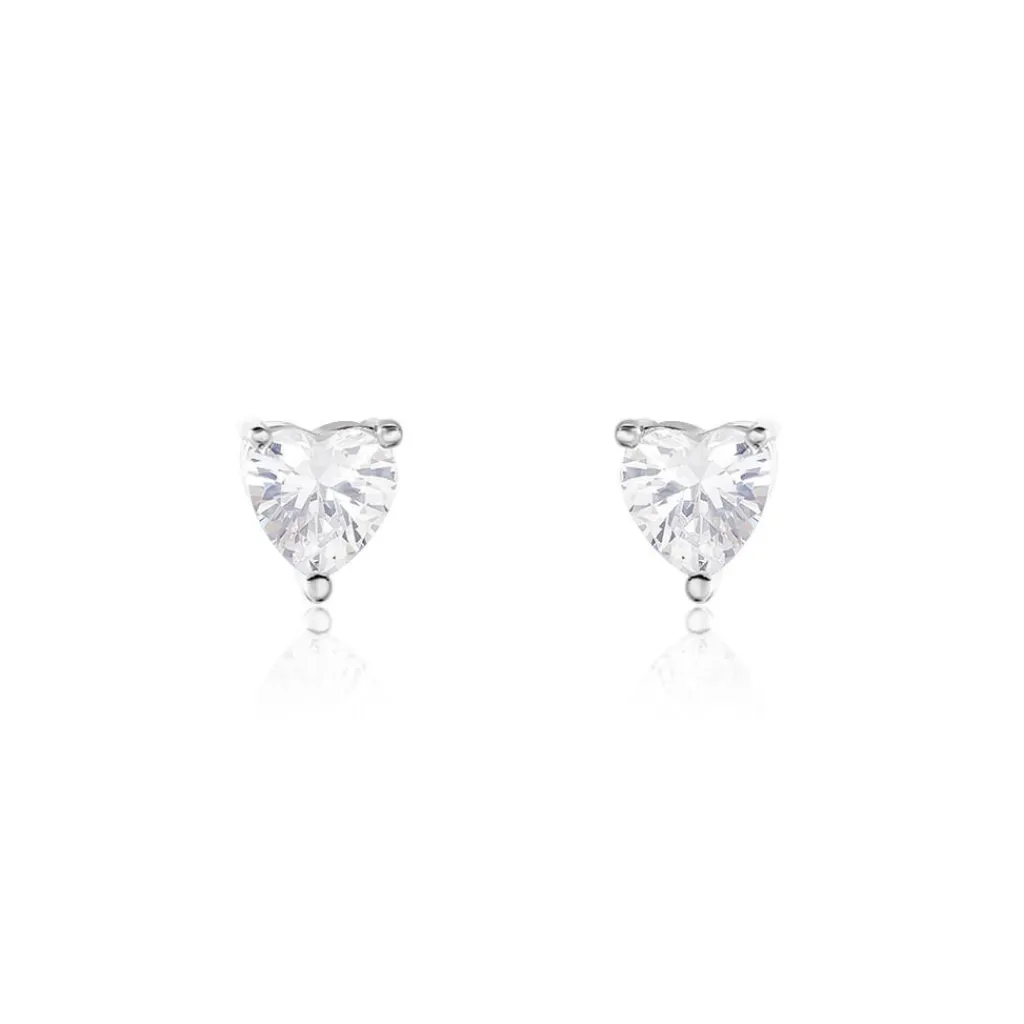 Boucles D’oreilles Argent Blanc 925/1000 Oxydes De Zirconium Coeur