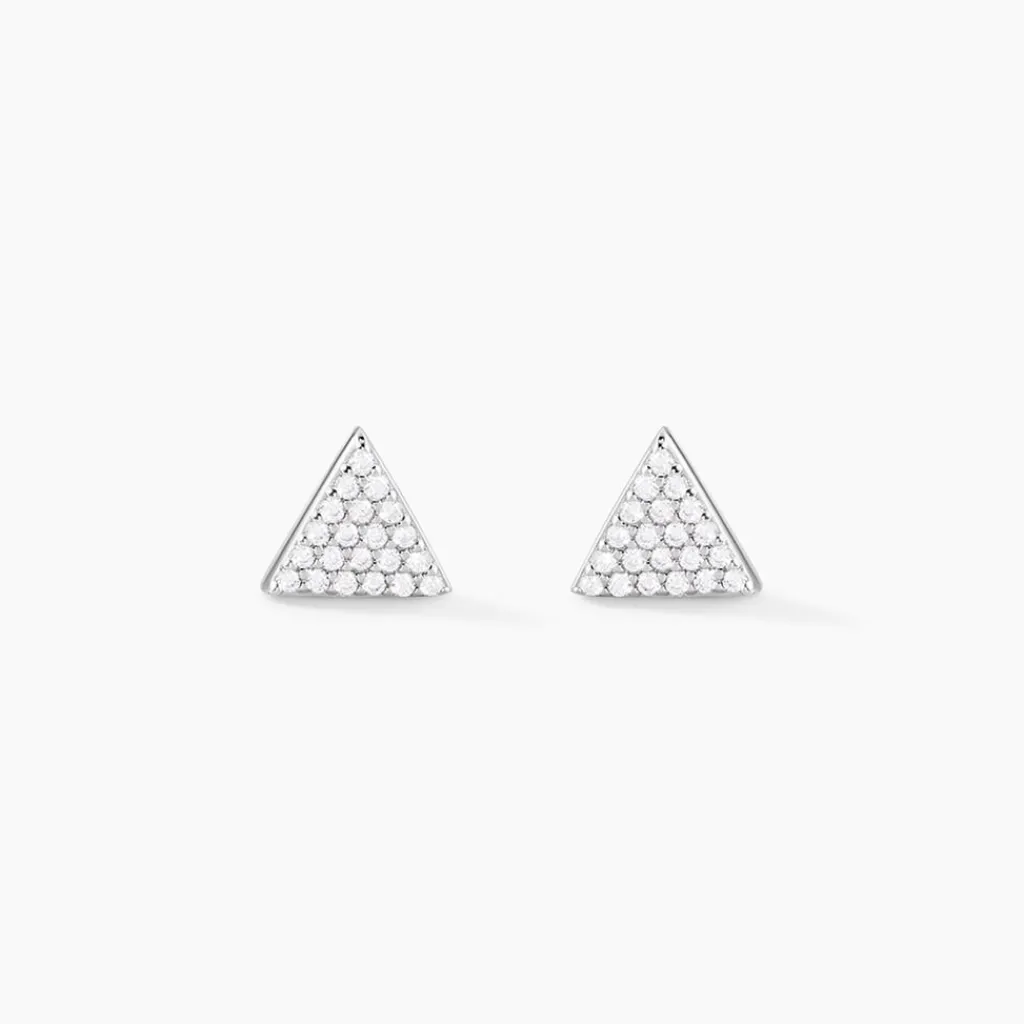 Boucles D’oreilles Argent Blanc 925/1000 Triangles Pavages Oxydes De Zirconium