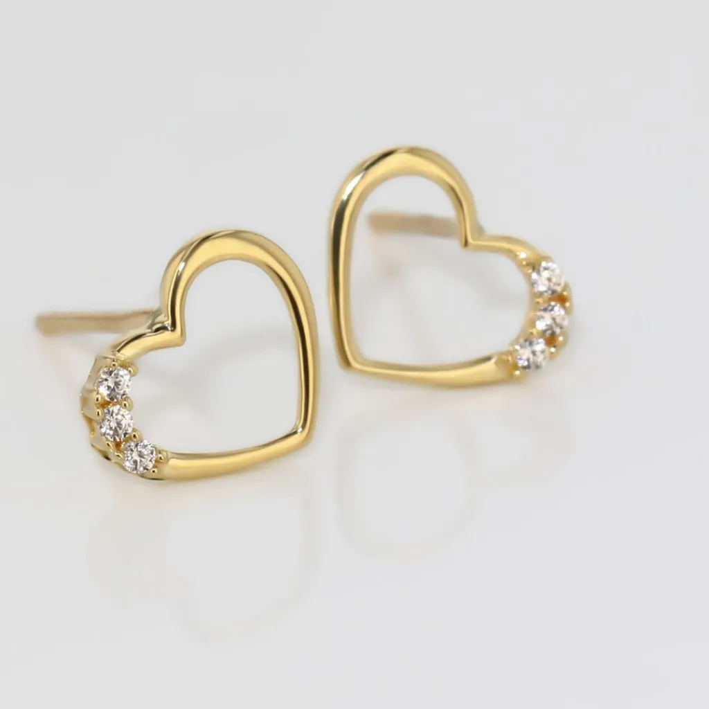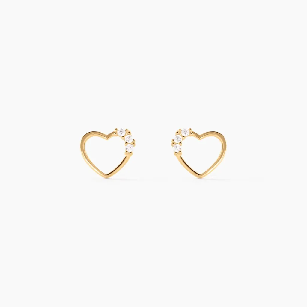 Boucles D’oreilles Or Jaune 375/1000 Puces C艙urs Oxyde De Zirconium