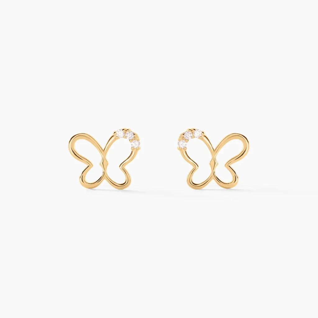 Boucles D’oreilles Or Jaune 375/1000 Puces Papillons Oxyde De Zirconium