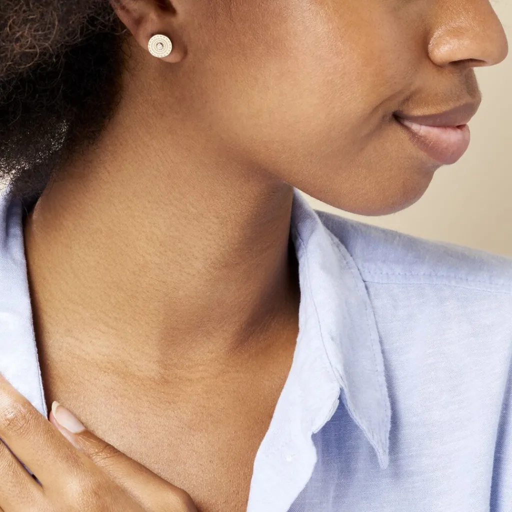 Boucles D’oreilles Puces Plaqué Or Jaune Motifs Cercles Ciseles Et Oxydes De Zirconium