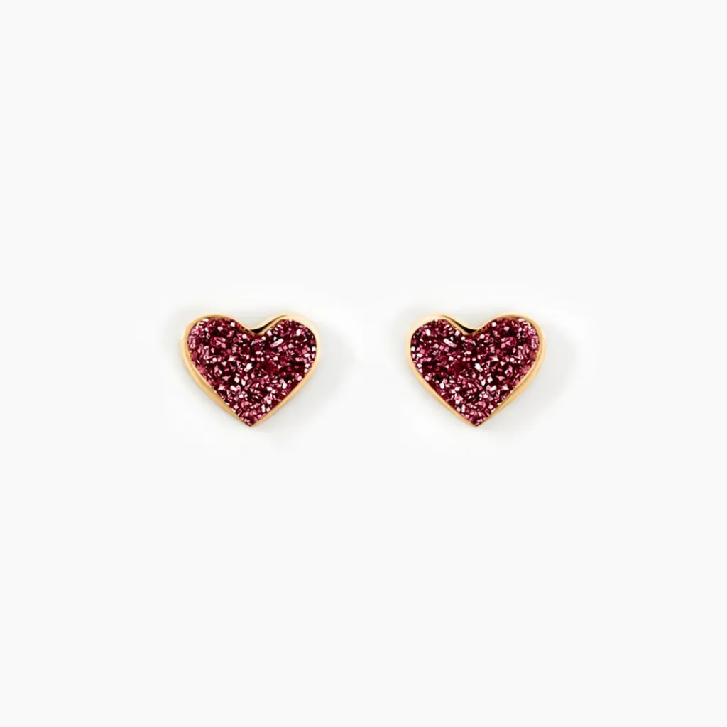 Boucles D’oreilles Or Jaune 375/1000 Puces Motifs C艙urs Glitter Rose