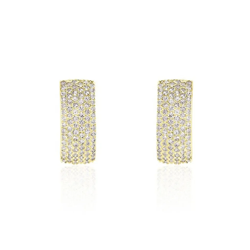 Boucles D’oreilles Puces Or Jaune 375/1000 Pavage Diamants 0.435cts