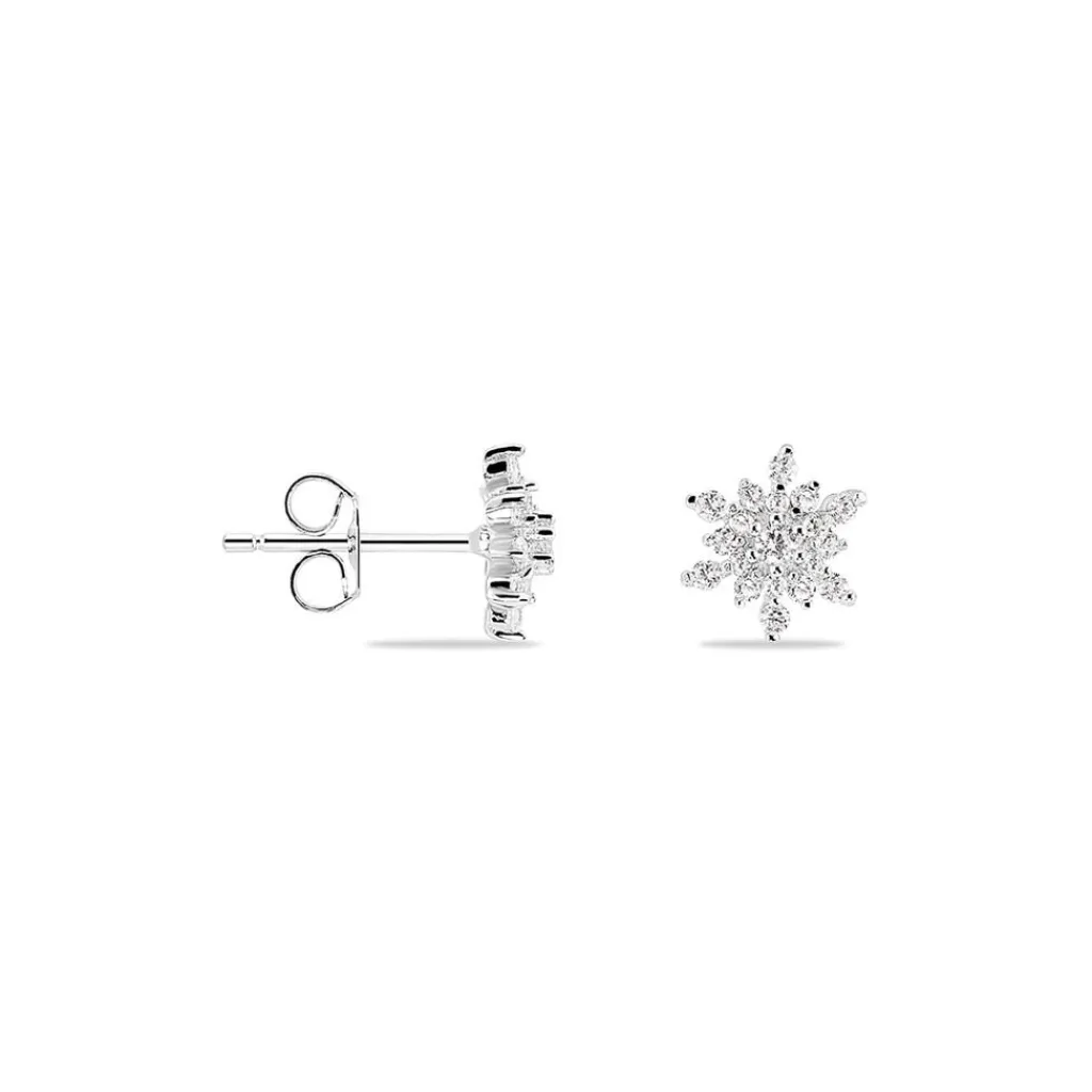 Boucles D’oreilles Puces Argent Blanc 925/1000 Motifs Flocons Oxydes De Zirconium