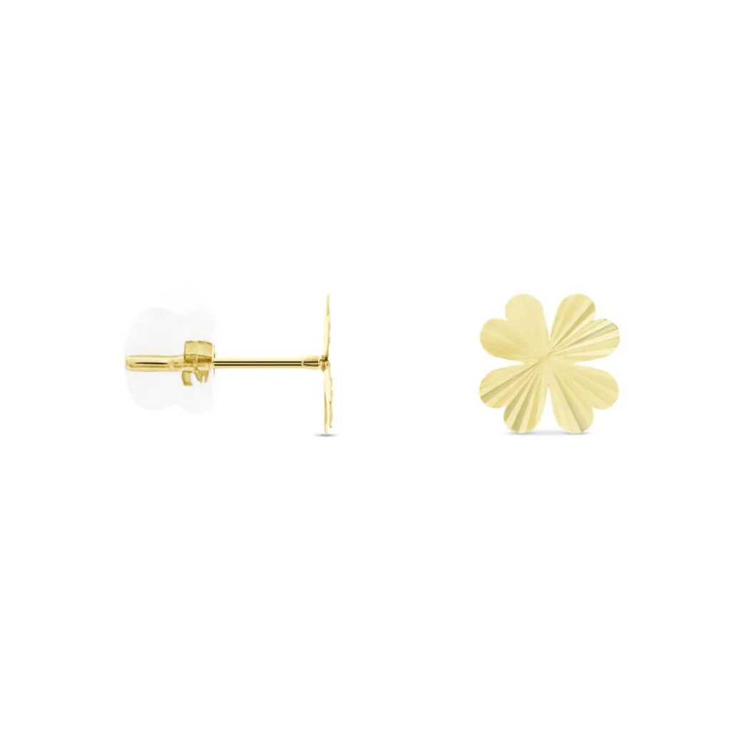 Boucles D’oreilles Puces Boucles Infinies Or Jaune 375/1000 Trèfle Strié