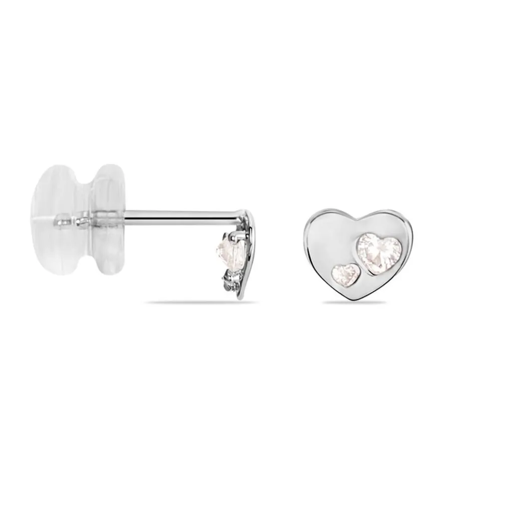 Boucles D’oreilles Or Blanc 375/1000 C艙ur Plein Avec Oxydes De Zirconium