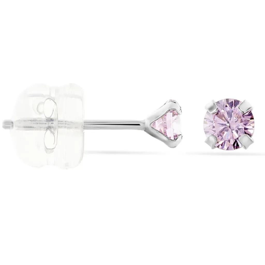 Boucles D’oreilles Or Blanc 375/1000 Puce Oxyde De Zirconium Rose 3mm