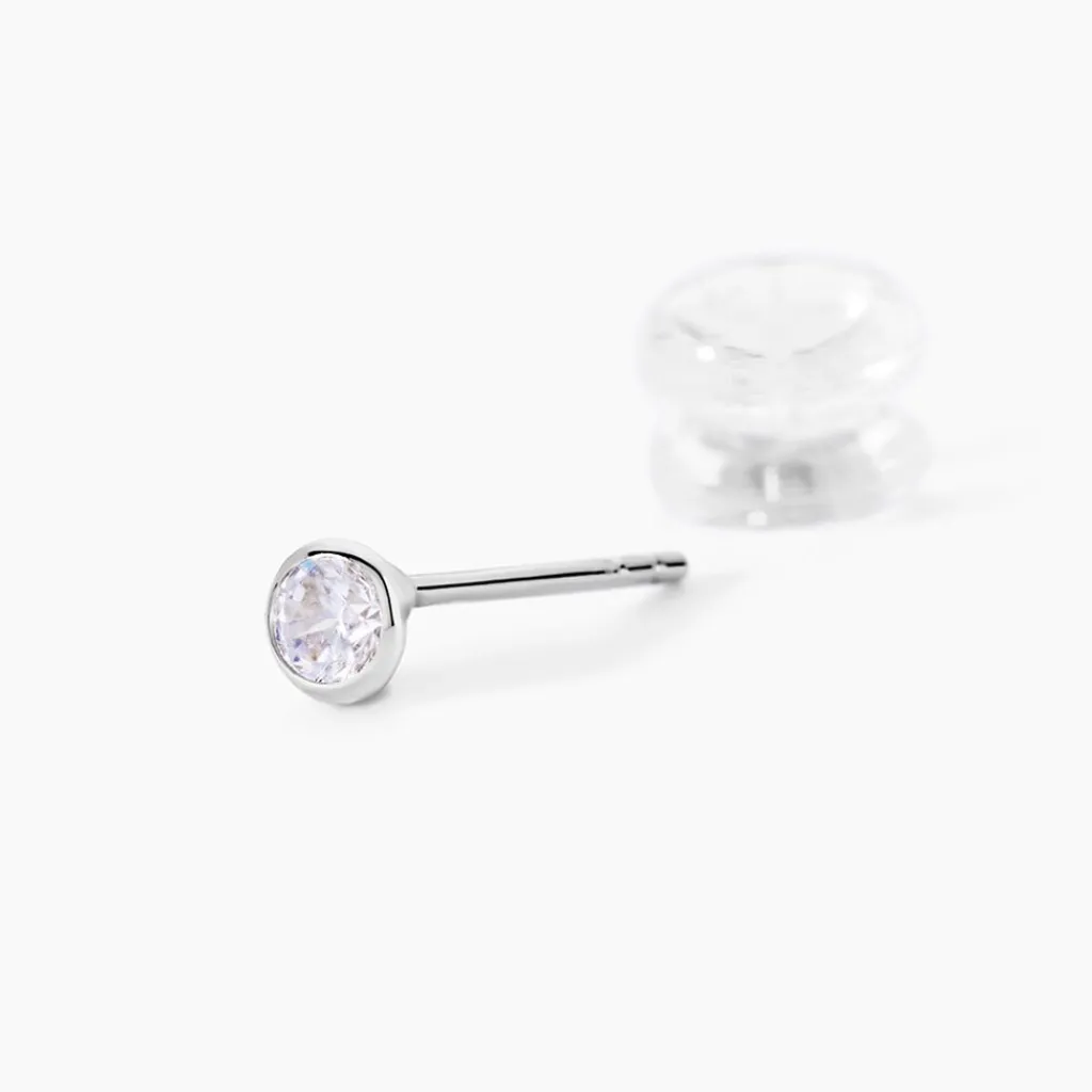 Boucles D’oreilles Puce Or Blanc 375/1000 Oxyde De Zirconium 3mm Pm