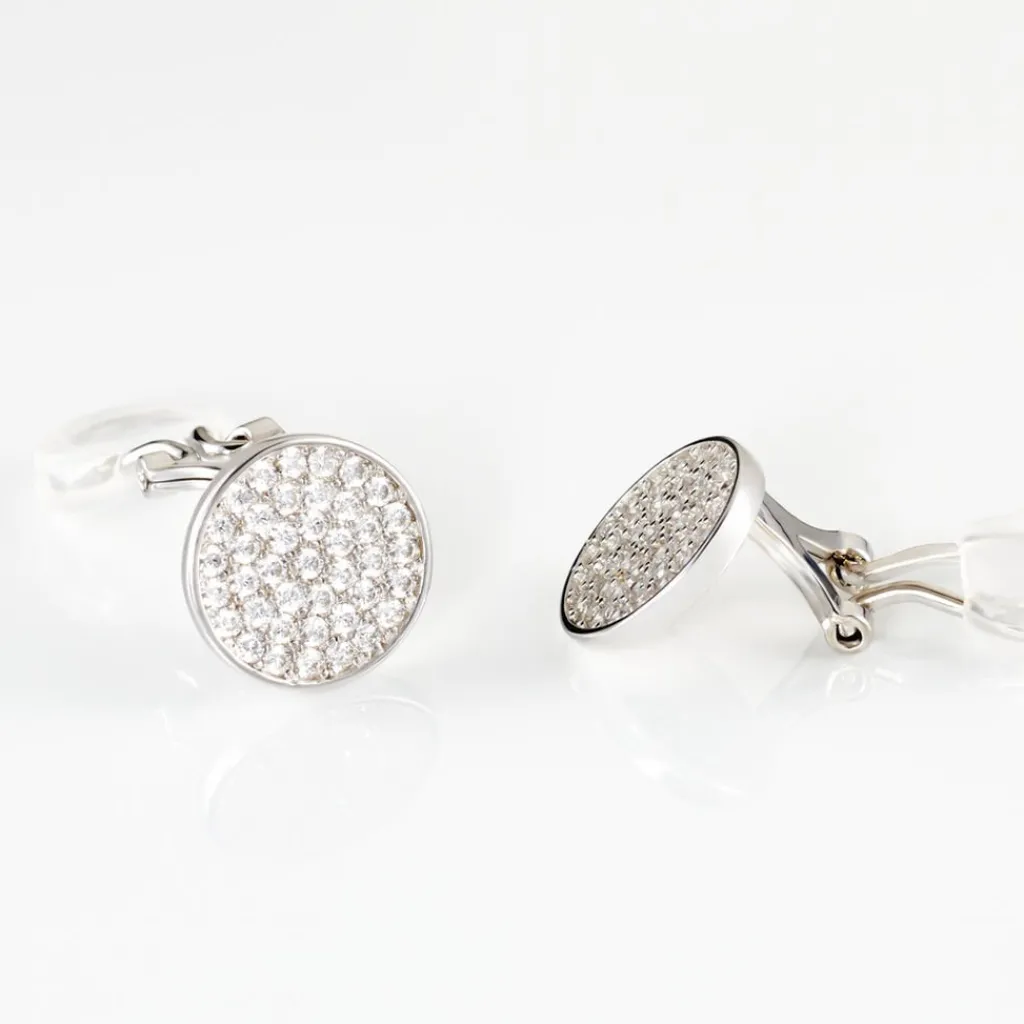 Boucles D’oreilles Clip Argent Blanc 925/1000 Pastilles 12mm Pavage Oxydes De Zirconium