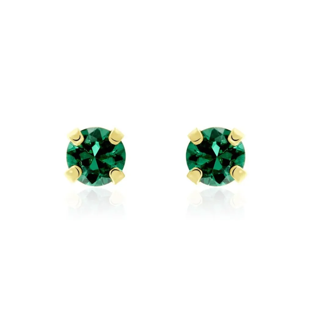 Boucles D’oreilles Puces Or Jaune 375/1000 Oxyde De Zirconium Vert 3mm