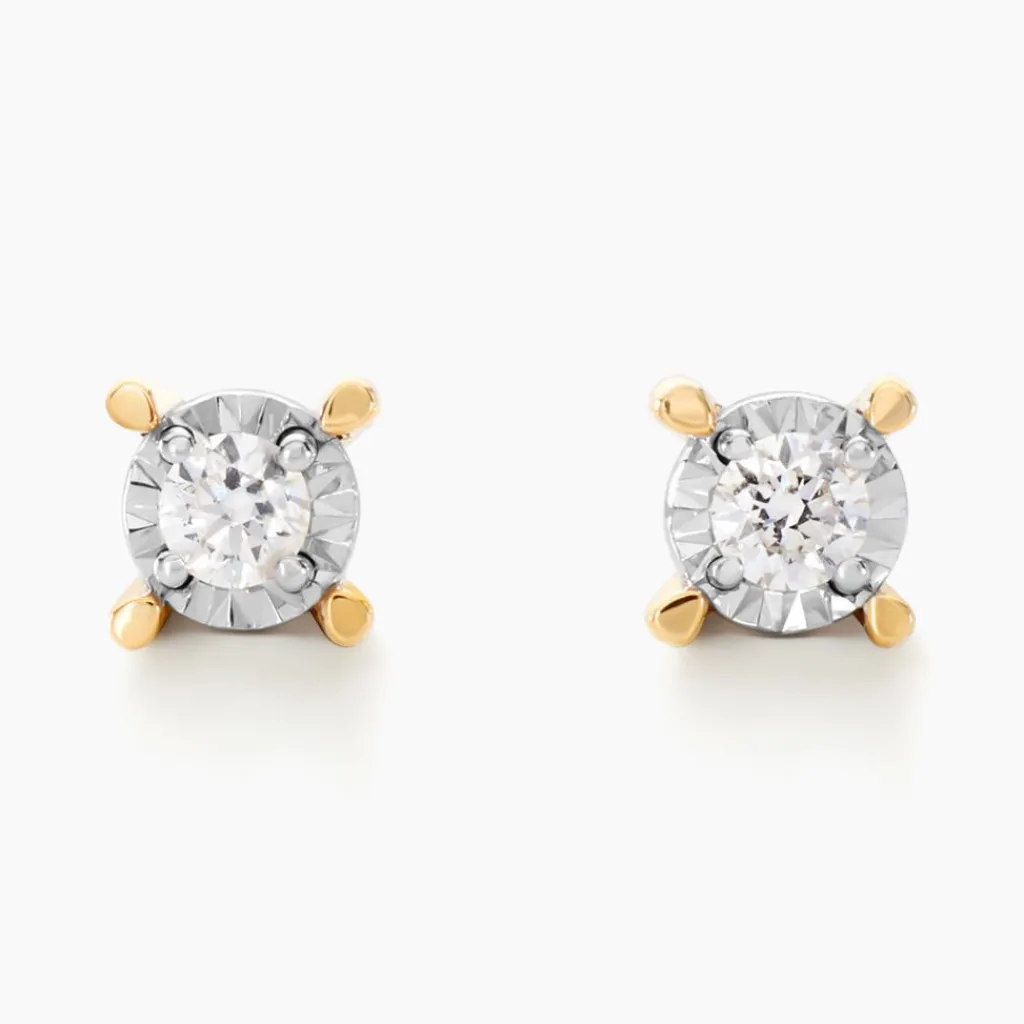 Boucles D’oreilles Puces Or Jaune 375/1000 Serti Illusion Diamants 0.22cts