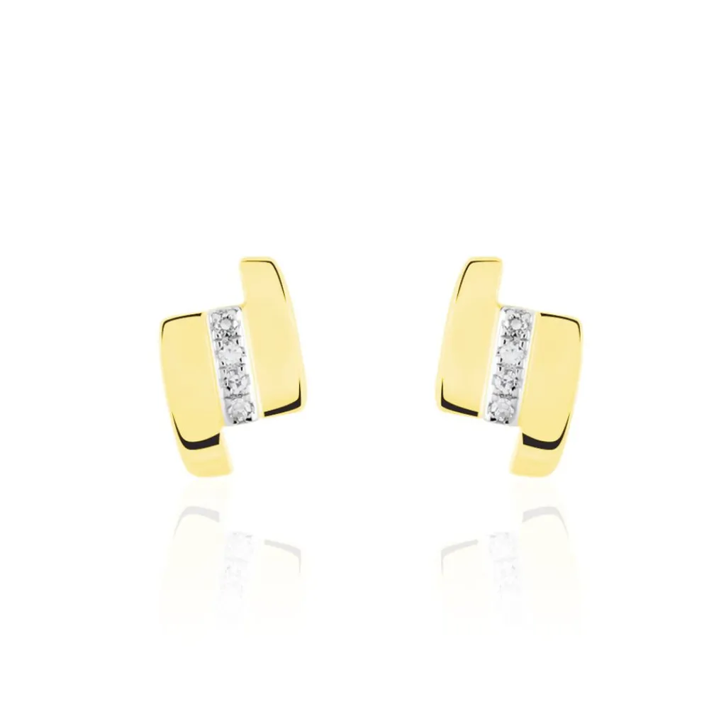 Boucles D’oreilles Or Jaune 375/1000 Demi Lune Diamants 0.89cts