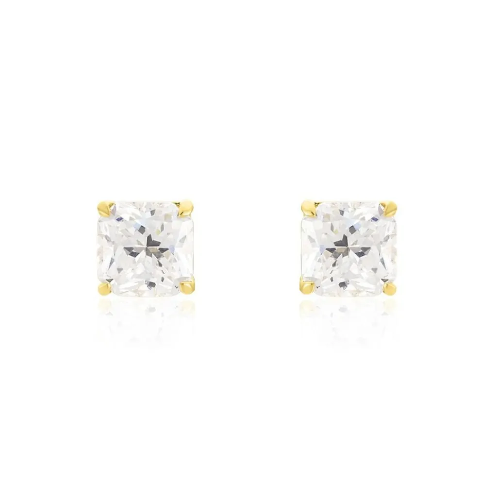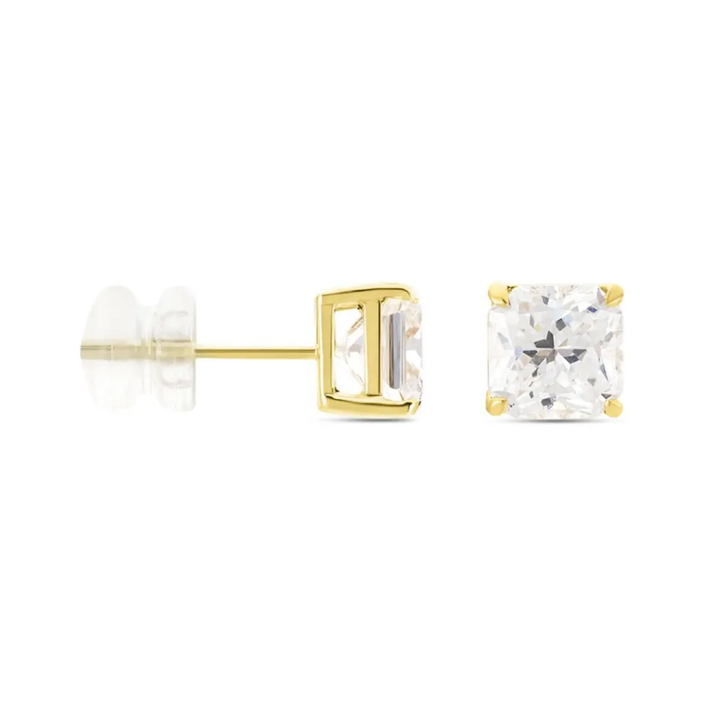 Boucles D’oreilles Or Jaune 375/1000 Oxydes De Zirconium Carre 6mm