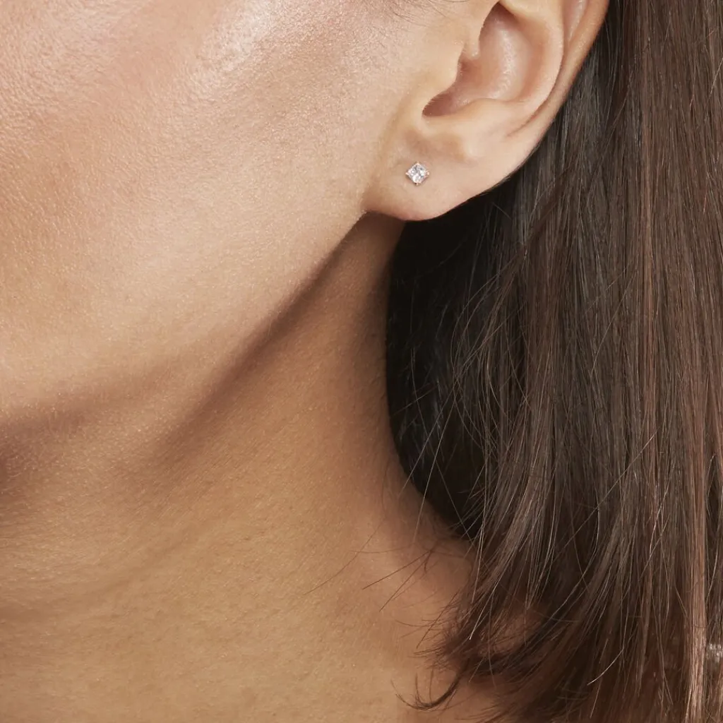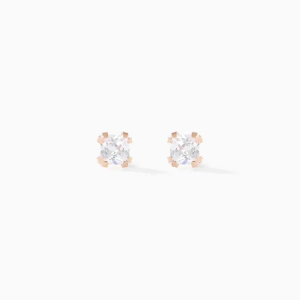 Boucles D’oreilles Or Rose 375/1000 Puce Oxyde De Zirconium Carres 3mm