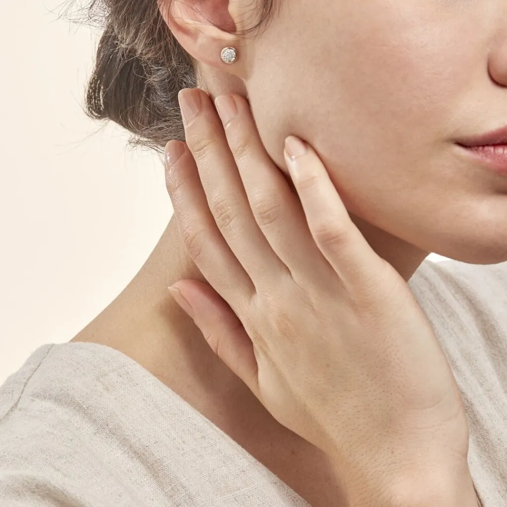 Boucles D’oreilles Or Jaune 375/1000 Puces Cercles Strass