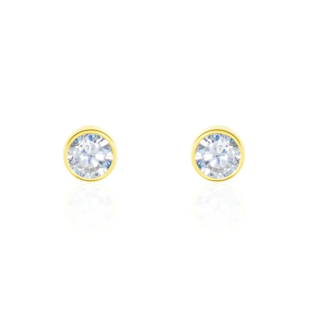 Boucles D’oreilles Or Jaune 375/1000 Oxyde De Zirconium Serti Clos 5mm