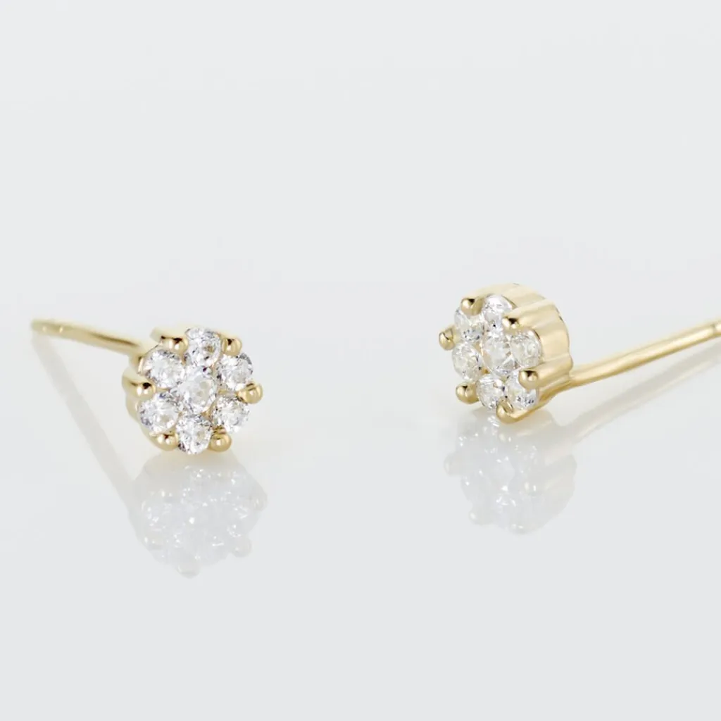 Boucles D’oreilles Or Jaune 375/1000 Fleur Avec Poussette Silicone Oxydes De Zirconium