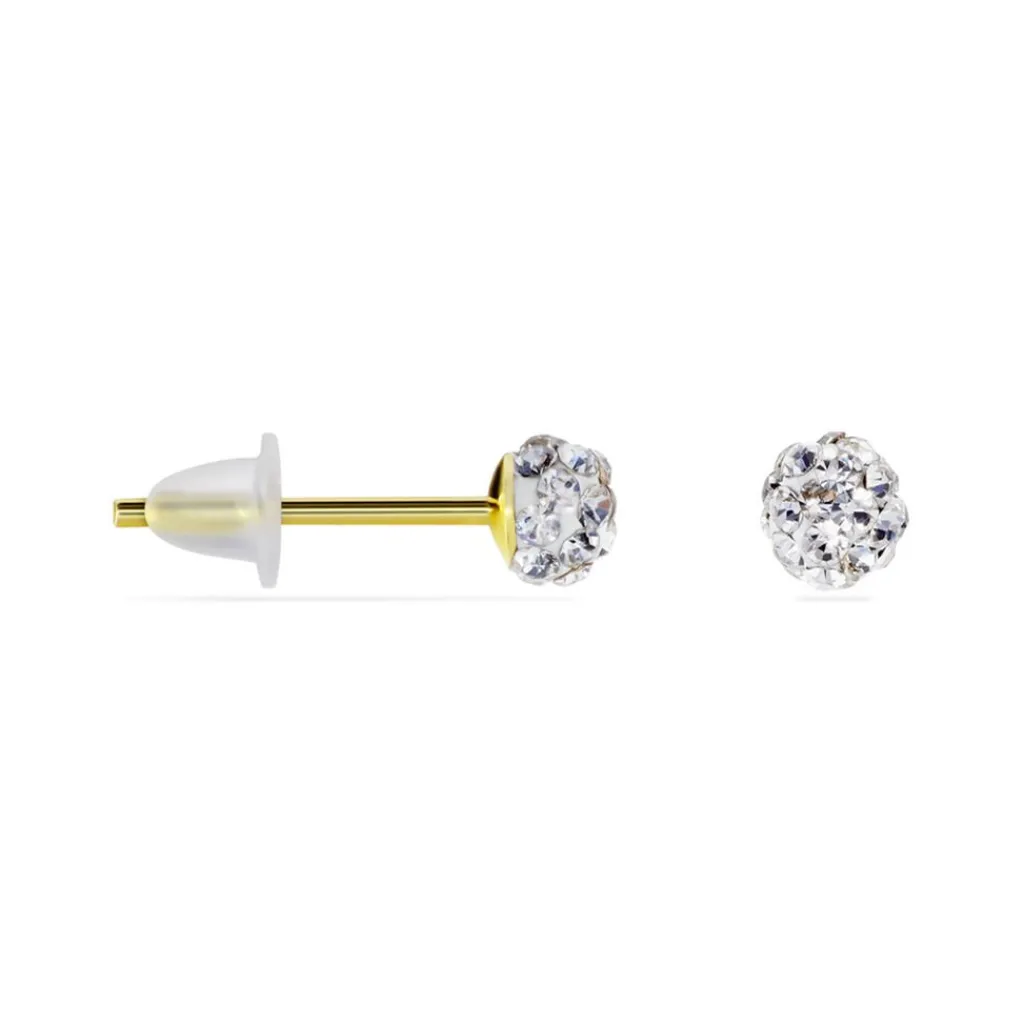 Boucles D’oreilles Or Jaune 375/1000 Boules Cristal 4mm