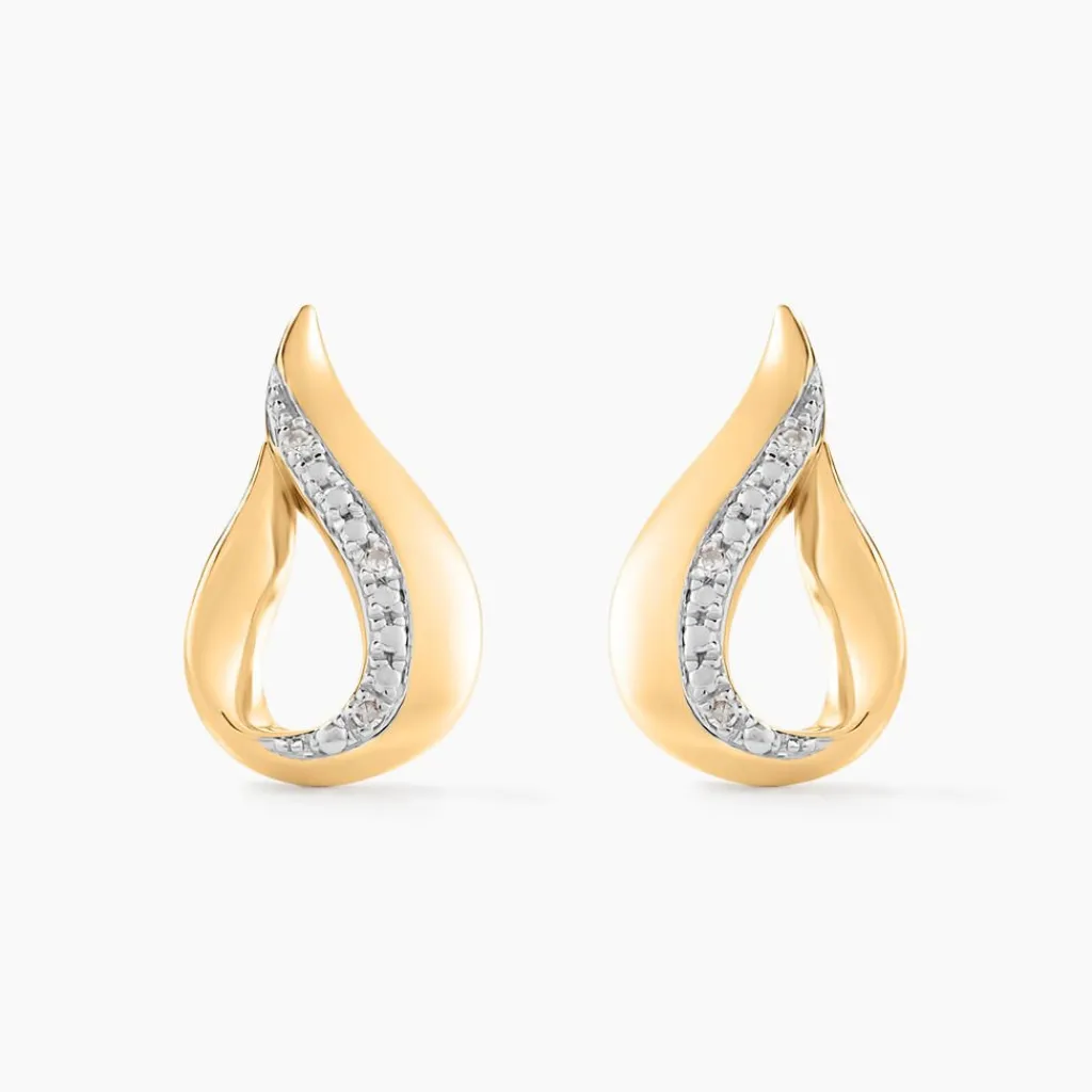 Boucles D’oreilles Puces Or Jaune 375/1000 Et Diamants Goccie