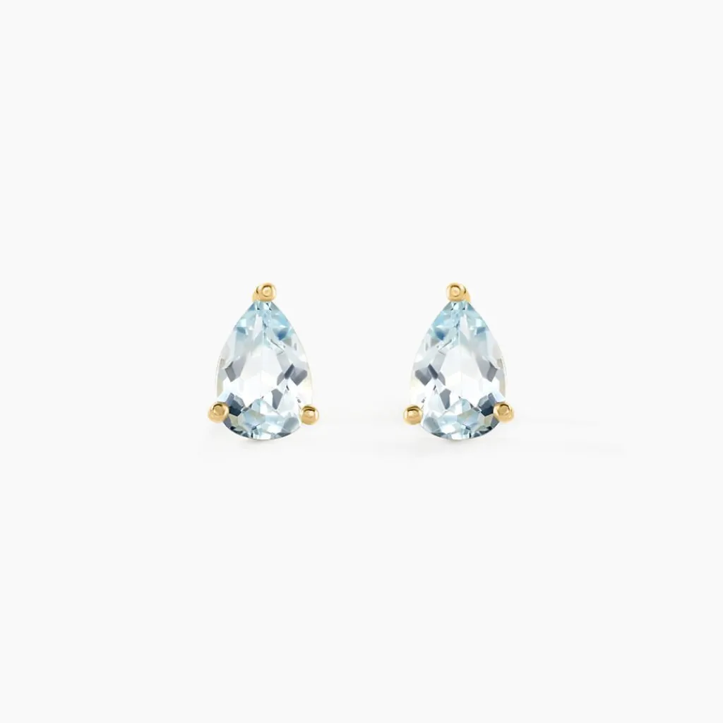 Boucles D’oreilles Puces Or Jaune 375/1000 Poire Topaze 0.30cts Serti Griffes