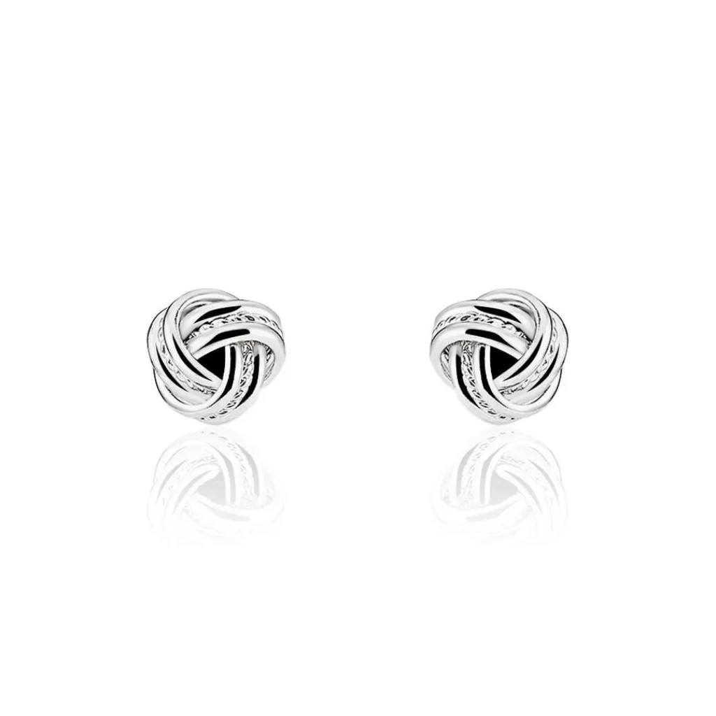 Boucles D’oreilles Puces Argent Blanc 925/1000 Nids Stries