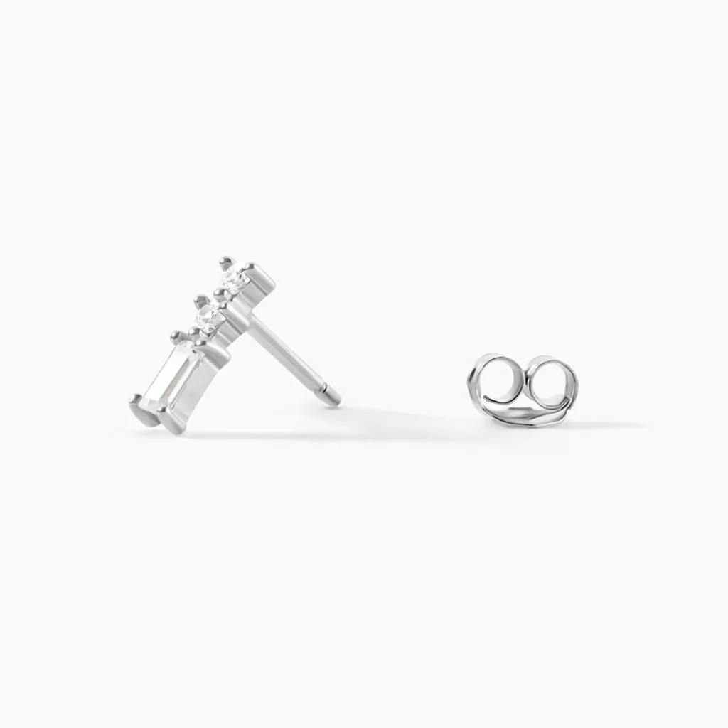 Boucles D’oreilles Puces Argent 925/1000 Oxydes De Zirconium Serti Griffes
