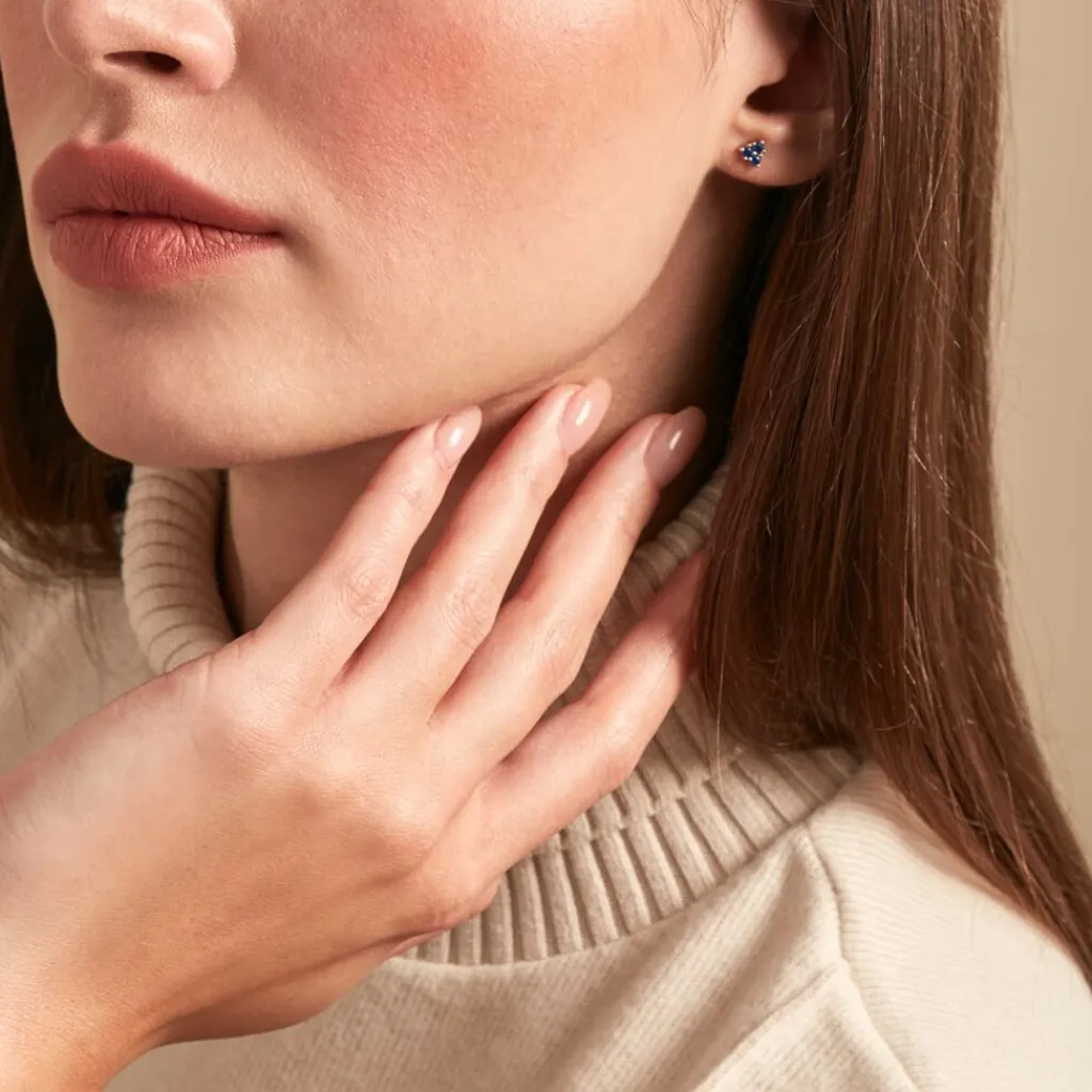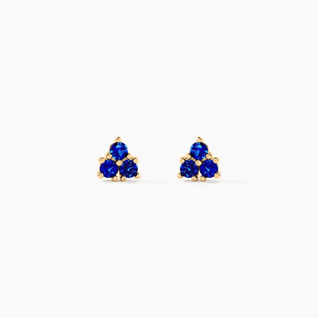 Boucles D’oreilles Puces Plaqué Or Jaune Trio Spinelles Bleues