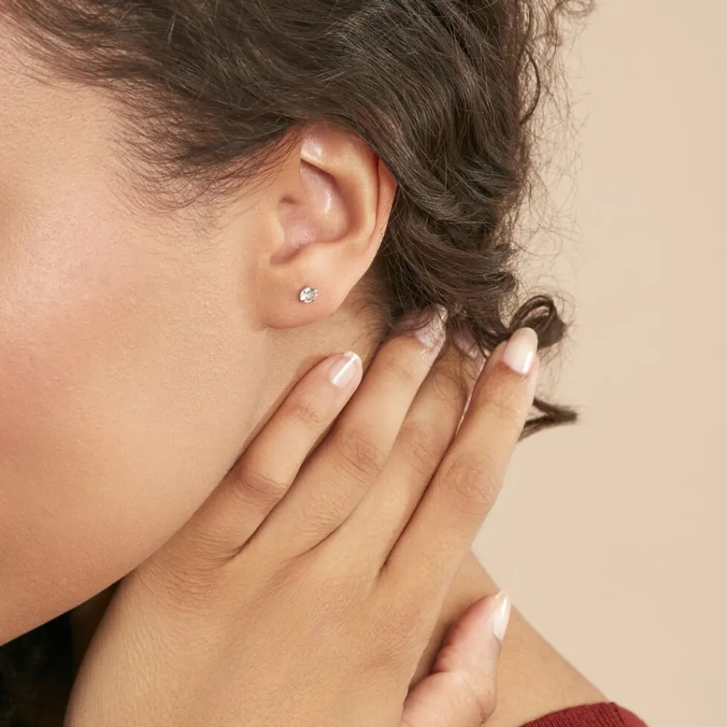 Boucles D’oreilles Puces Argent Blanc 925/1000 Oxydes De Zirconium Blanc 4mm