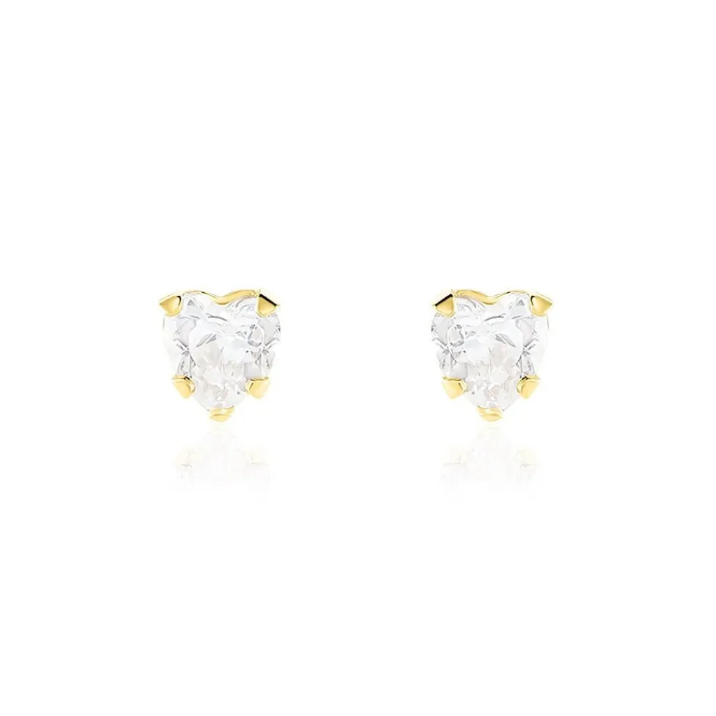 Boucles D’oreilles Puces Or Jaune 750/1000 C艙urs Oxyde De Zirconium Serti Griffes Fermoirs Vis