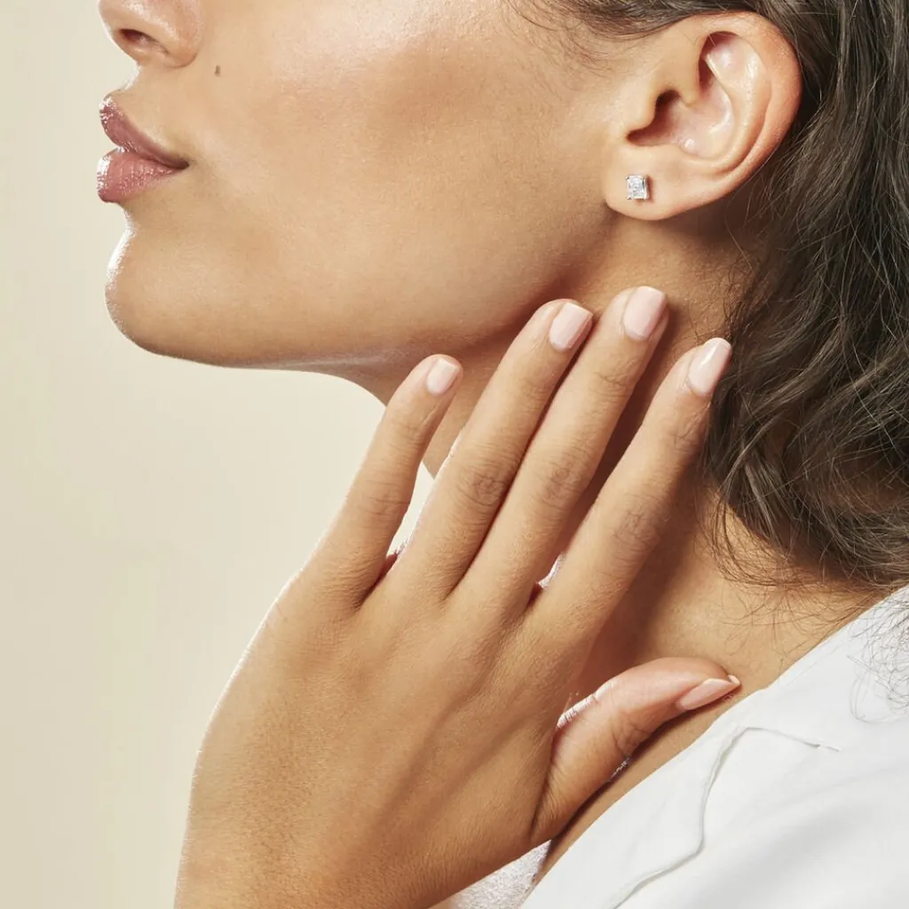 Boucles D’oreilles Puces Argent Blanc 925/1000 Formes Rectangles Oxydes De Zirconium 4x5mm