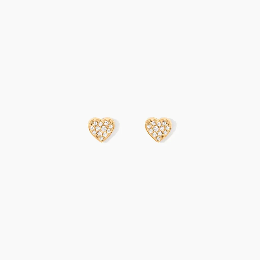 Boucles D’Oreilles Puces Plaqué Or Jaune C艙urs Pavage Oxydes De Zirconium