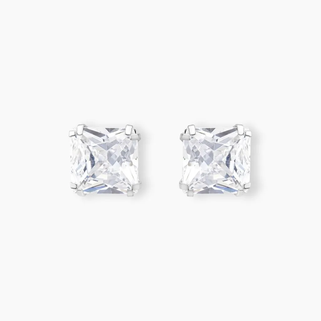 Boucles D’oreilles Puces Or Blanc 375/1000 Oxydes De Zirconium Carre 6mm