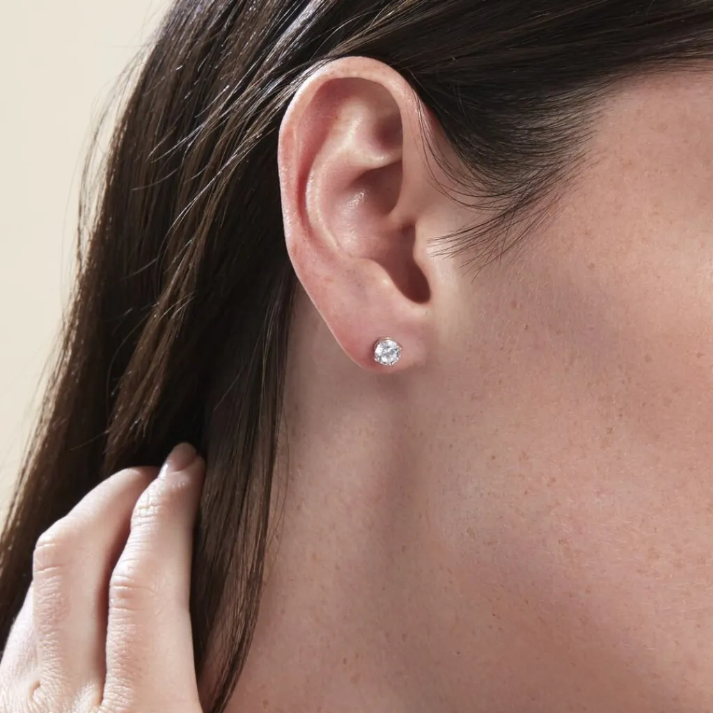 Boucles D’oreilles Puces Or Blanc 375/1000 Oxyde De Zirconium Serti 4 Griffes 5mm