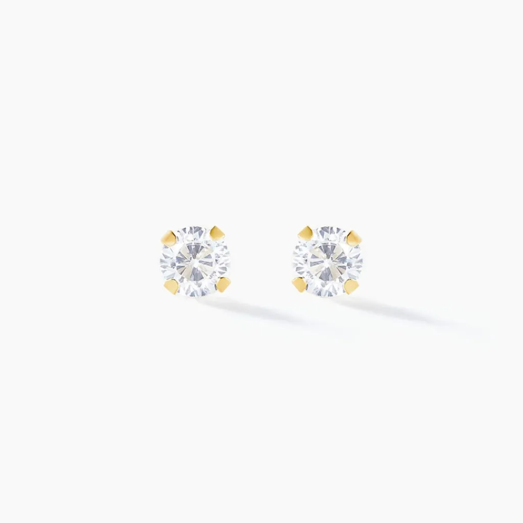 Boucles D’oreilles Puces Or Jaune 750/1000 Oxydes De Zirconium Fermoirs Vis 4mm