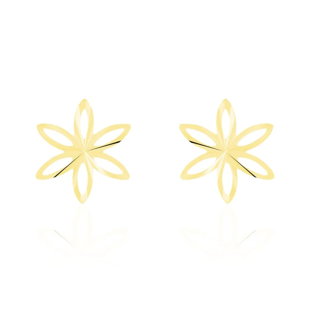 Boucles D’oreilles Or Jaune 375/1000 Puces Marguerites Ajourées