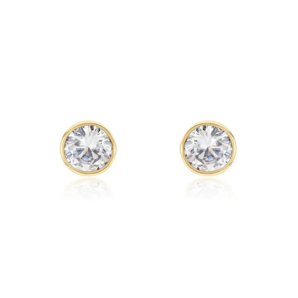 Boucles D’oreilles Puces Plaqué Or Jaune Oxydes De Zirconium Blancs Sertis Clos