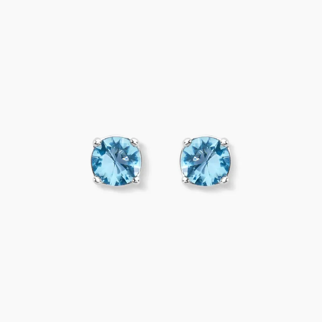 Boucles D’oreilles Puces Argent Blanc 925/1000 Oxyde De Zirconium Bleu Azur Serti Griffes
