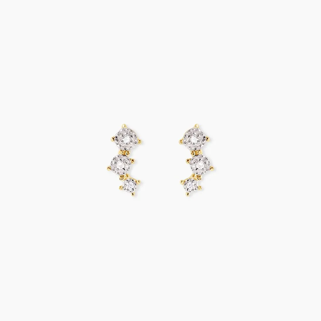Boucles D’oreilles Puces Or Jaune 375/1000 Triple Pavage Diamants Ronds 0.003cts