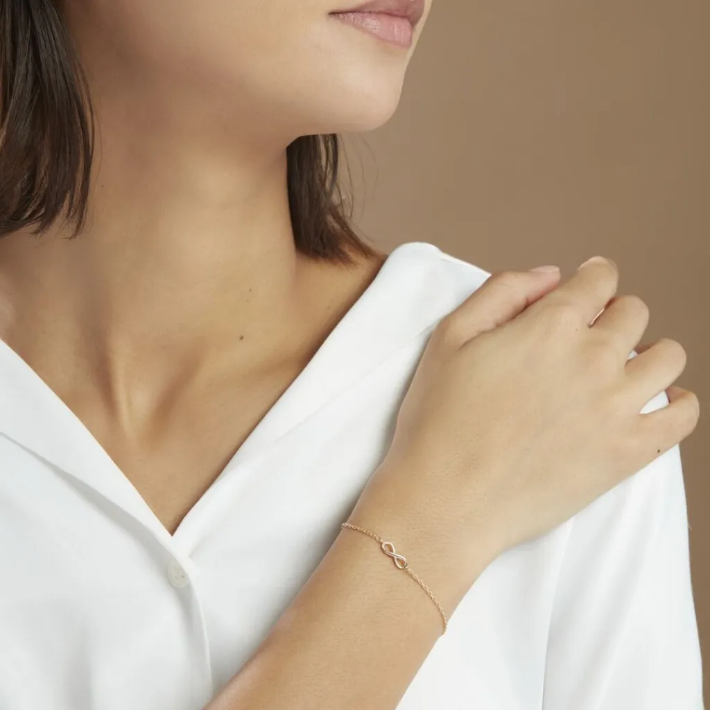 Bracelet Plaque Or Jaune Forme Infini Maille Forcat 18cm