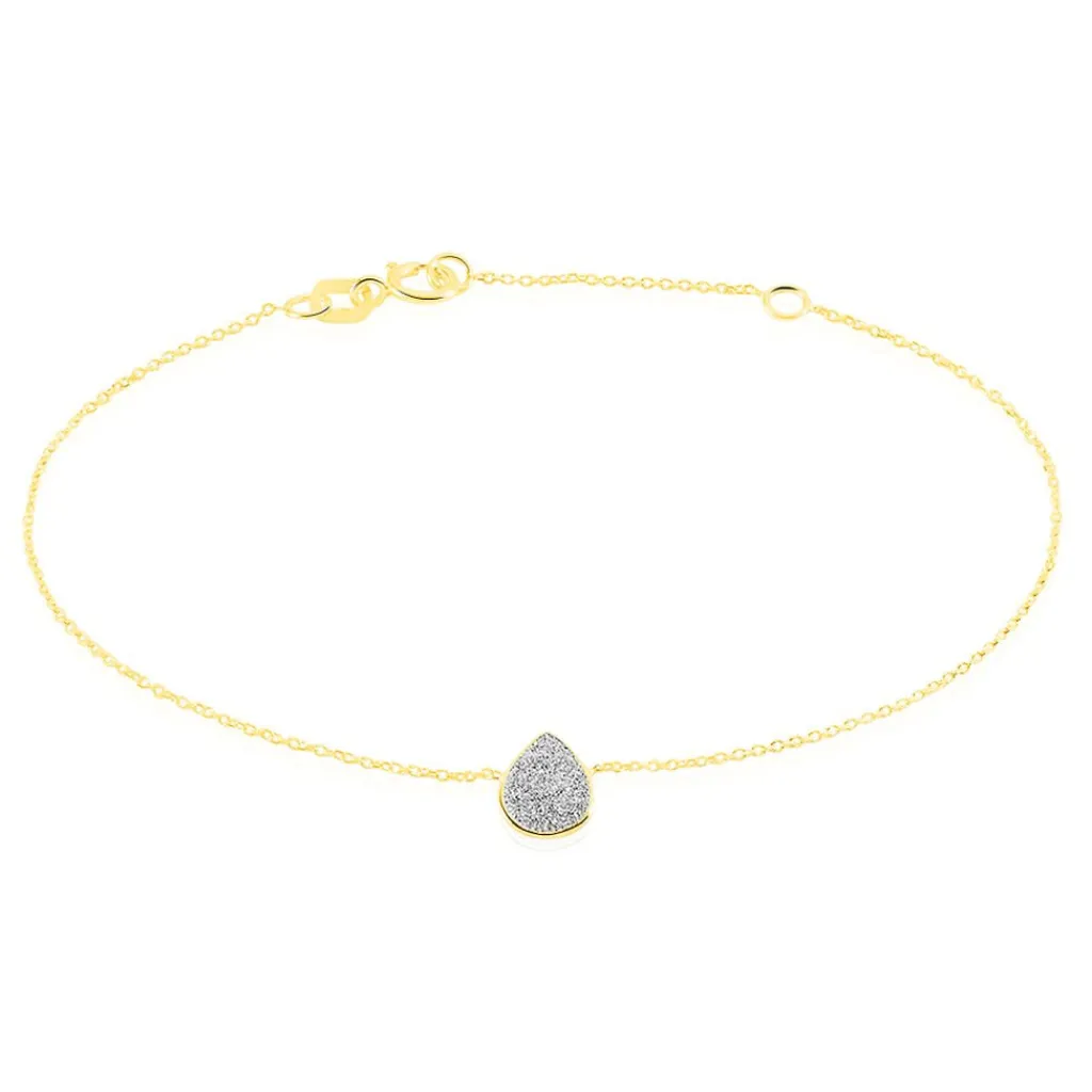 Bracelet Or Jaune 375/1000 Motif Goutte Glitter Silver Maille Jaseron 18cm