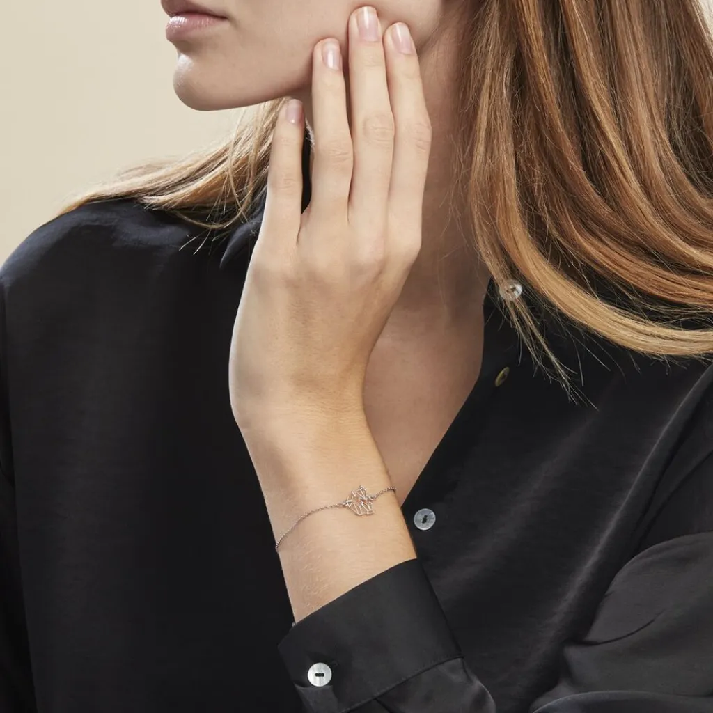 Bracelet Argent Blanc 925/1000 Renard Origami Chaine Jaseron 16cm