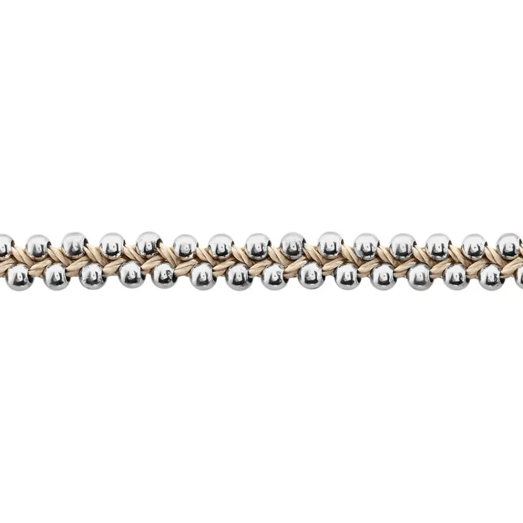 Bracelet Argent 925/1000 Cordon Gris /taupe Ajustable